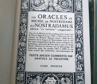 Vends collection complète en 2 tomes de Les Oracles de Nostradamus Texte ancien commenté par Anatole Le Pelletier Édition " ne varietur " Éditions Jean de Bonnot Très belle éd