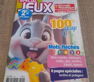 Magazine Spécial jeux, éditions La Nouvelle République, 100 % jeux, mots fléchés 1, 2, 3, 4, mots croisés, mélangés, codés, quiz, tests et sudoku, - avril/mai 205 8 pages s