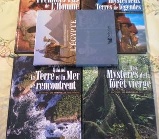 cinq livres en excellent état 1) les mystères de la forêt vierge 2) quand la terre et la mer se rencontrent 3) mondes mystérieux terres de légendes 4) les premiers pas de l'hom