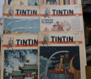 periodiques TINTIN année 1949 manque trois numeros pour cette année presque complète les numéros 32 - 42 - 54 beaucoup de couverture AVEC HERGE TINTIN ECT VOICI les n