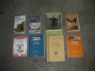 8 livres de pêche Walden ou la vie dans les bois:10€. Désert solitaire: 12€. Le coup du soir: 10€. Une saison de chasse en Alaska: 5€. Avant la nuit: 10€. D'un truc à l'autre