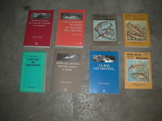 8 livres de pêche. A la mer: 24€. La pêche en France: 25€. La pêche à la ligne: 26€. Mouche et lancer: 30€. La vie agitée des eaux dormantes: 10€. La pêche à la truite: 20€.