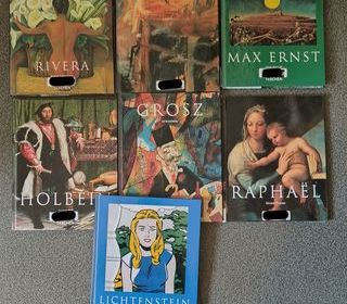 1-Rivera 2-De Kooning 3-Max Ernst 4-Holbein 5-Grosz 6-Raphaël 7-Lichtenstein Ouvrages avec équipement de bibliothèque (étiquettes tampons et couverture) acheté lors d'une