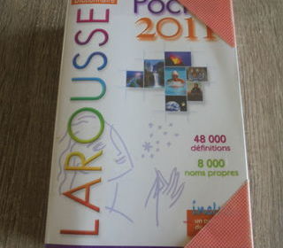 Dictionnaire poche, de l'année 2011, aux Editions Larousse, 48 000 définitions, 8 000 noms propres, inclus quelques pages de conjugaison et de proverbes avec explications, c