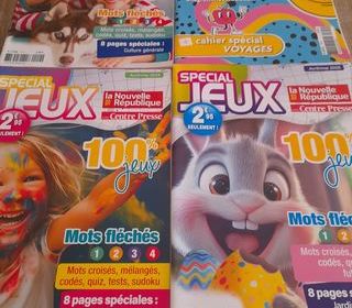 Lot de 4 magazines Spécial jeux, éditions La Nouvelle République, 100 % jeux, mots fléchés 1, 2, 3, 4, mots croisés, mélangés, codés, quiz, tests et sudoku, - décembre/janvier