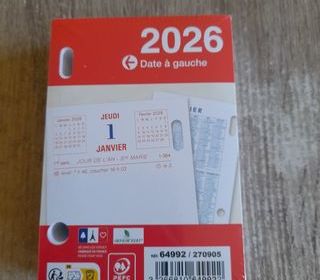 Pour ne rien oublier et pour toutes vos plannifications, bloc éphémeride de 372 feuillets blancs, écritures bleues et chiffres rouges, année civile, date à gauche, 1 journée p