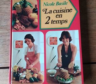 La cuisine en 2 temps de Nicole Basile. Ce livre n'a jamais été utilisé. il a des années mais est impeccable. Less entrées, soupes. les poissons, viande, accompagnement et desser