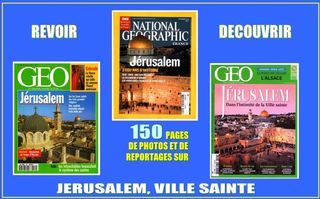 Vous projetez un voyage A JÉRUSALEM Voici 3 revues avec : 480 pages de REPORTAGES Dont 150 pages de photos Et de reportages sur : --- JÉRUSALEM --- Les revues sont d