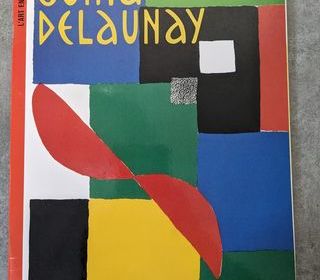 Livre "Sonia Delaunay - L'art en formes" avec couverture affichant diverses formes géométriques colorées. Contient 6 planches d'autocollants repositionnables. Édition Palette...