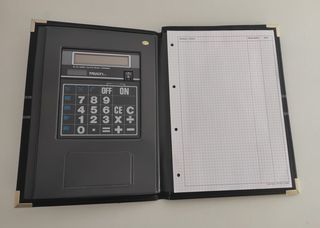Carnet d'affaire avec calculatrice Calculatrice à 10 chiffres Carnet petits carreaux A4 Hauteur 32.5 mm Largeur24 mm Epaisseur 2.5 mm NEUFS Frais d'expédition de 5.40 € par