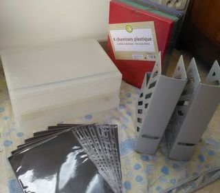 - 8 Pochettes Perforées en Plastique transparent avec intercalaire "Noir", marque PANODIA - M 4, made in France, non utilisées, le lot = 4 €, Dim. : 30 x 23 cm, en parfait état,