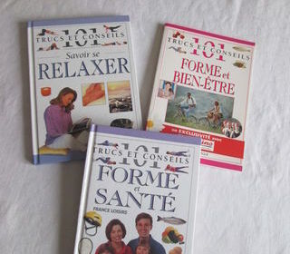 3 petits livres format 13.5 cm * 18.5 cm, en bon état. 101 trucs et conseils : - forme et bien être 59 pages - savoir se relaxer 69 pages - forme et santé 69 pages