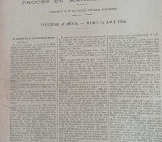 Compte rendu in extenso des audiences, transmis par le Secrétariat général de la Haute Cour de Justice : Procès du Maréchal PETAIN. PARIS IMPRIMERIE DES JOURNAUX OFFICIELS 194