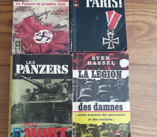 Sven Hassel : 4 liv. édition " presses pocket " -88- Les panzers de la mort -375 pages -202- La légion des damnés -312pages -804- Liquidez Paris ! -313 pages -375- Bataillon d