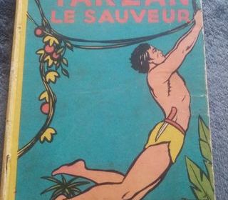 Livre ancien intitulé "Tarzan le Sauveur", couverture illustrée en couleur avec quelques signes d'usure, éditions Hachette, numéro 9 de la série plus Tarzan et le petit roi même an