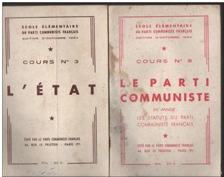 ECOLE ELEMENTAIRE DU PARTI COMMUNISTE FRANÇAIS Edition d'Octobre 1953 COURS N° 3 : L'ETAT (24 pages) Revue pliée dans le sens de la hauteur, des petits traits de crayon sur