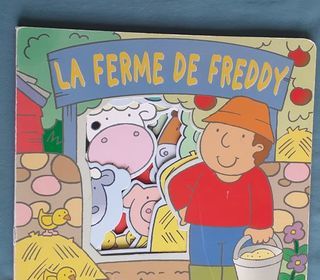 Vends un livre cartonné de 10 pages : La ferme de Freddy. Les pages sont trouées pour faire apparaître en évidence l'animal dont on raconte l'histoire. Editions Succès du Livre.