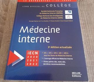 "Médecine interne", 3ème édition actualisée, iECN 2020, 2021, 2022, chez MED-LINE Editions, couverture soupleet lavable, 420 pages. Résumé : - L'ouvrage officiel réalisé p