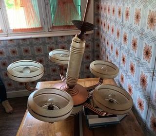 Lustre en étain 6 branches Hauteur 47 cm Diamètre 60 cm Cause déménagement