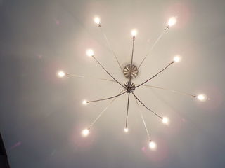 Lustre inox halogène 12 branches 20 w éclairage blanc 1 verre cassé mais se fixe et ne se vois pas du tout
