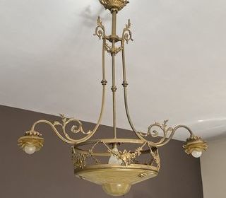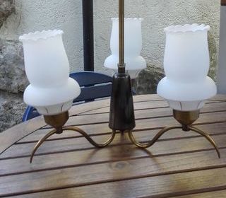 Vend lustre des années 50 en laiton, pâte de verre très bon état.