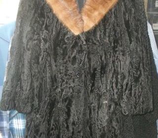 Manteau en fourrure véritable astrakan et col vison Fermeture par bouton , doublure satin noir Taille 44