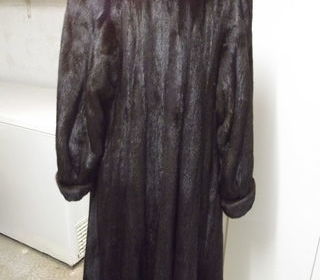 Manteau de vison pleine peau, Marron foncé Très belle qualité (fourreur proximité Champs Élysée PARIS) Col Officier Manche Gigot Fermeture par 3 crochets. Taille: 42/44 Marq