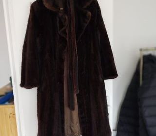 vends manteau fourrure vison marron long etat neuf porte une fois