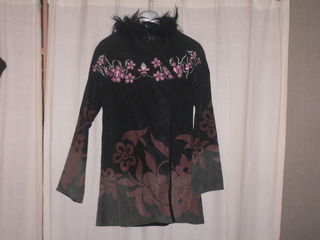 Manteau en velours, belle qualité. Col fourrure non amovible. Fermeture par scratchs. Très bon état (jamais porté) Acheté puis dans un carton lors d'un déménagement et..oublié.