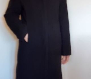 Manteau Jennifer taille L Noir à boutons (6) Fausses poches Fourrure non amovible Longueur 83 cm à plat Largeur sous bras 47cm à plat Largeur bas du manteau 57 cm à.plat