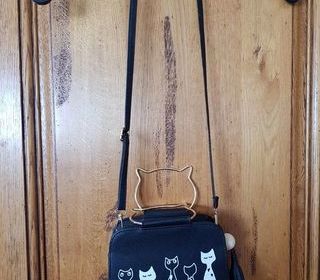 Sac à main chat neuf mesure 22 cm sur 20 anses têtes de chats dorée se porte aussi en bandoulière 15 e