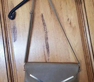 Pochette marron se porte en bandoulière 15 cm sur 21 cm deux poches neuve 5 e