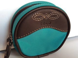 Pour vos cadeaux de Noël ou Fête des Mères, petit porte monnaie pochette SOCO en toile synthétique et cuir, fermeture par glissière zip. Article neuf L = 10 cm, l = 9 cm épaisseur