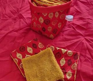 Bonjour je vend ce panier composer de 14 lingette démaquillante réutilisable Il peux etre utiliser pour se démaquiller ou pour les femmes après avoir fait pipi pour s'essuyer, la