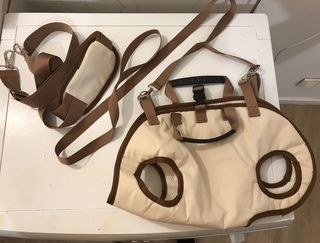 sac à porter en Bandouillère .Style banane Anse réglable .se détache grâce à des mousquetons . Tout Doublé.nombreuses poches intérieures dont une grande avec fermeture éclaire .
