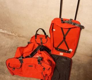 valise souple + grand sac de voyage à bandoulière + sac à main, en toile polyester, nombreuses poches, sur support à roulettes, jamais servi regardez mes autres annonces achats g