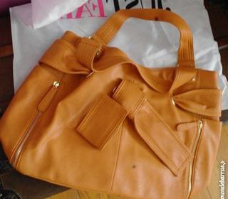 Sac à main<strong> neuf, jamais servi</strong> <strong>Mainstream</strong> couleur camel, simili cuir, vendu avec la poche de rangement «justfab» dimensions : 48x30,5x16,5 cm,