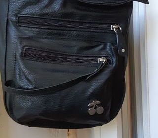 Sacoche marque Le temps des cerises. Marque écrite sur la bandoulière cloutée. Jamais portée. Prix original : 99,00 € en boutique. De nombreuses poches comme visibles sur les ph