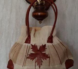 Joli et original, sac à main en rabane de Madagascar. Les anses, les coins et le motif floral sont en cuir marron L'intérieur est doublé, avec une poche, et fermé par un bouton p