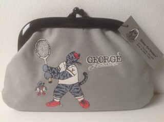 SAC POCHETTE FANTAISIE GRIS PERLE Envoi Possible SAC POCHETTE MOTIF CHAT AVEC RAQUETTE DE TENNIS ET SOURIS RAMASSEUR DE BALLES, ETAT NEUF . COULEUR GRIS PERLE . INTÉRIEUR PLAS