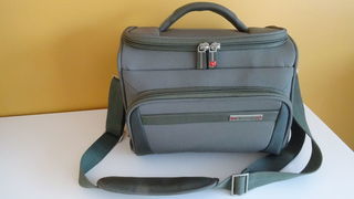 Vanity de la marque Samsonite - Vert Poignée de transport,avec pochettes multiplesà fermeture éclair TRES BON ETAT Largeur = 31 cm profondeur = 19 cm hauteur = 21 cm A re