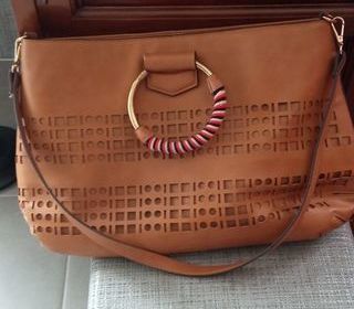 GRAND SAC A MAIN COULEUR CAMEL DOUBLE AVEC POCHETTE A L INTERIEUR PEUT SE PORTER EN BANDOULIERE OU AVEC LES POIGNEES