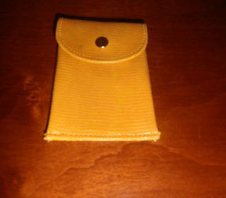 Pochette en imitation cuir grainé jaune servant de porte-clés grâce à l'anneau doré se trouvant à l'intérieur, très chic. Dimensions : 10 cm x 7 cm. Excellent état. A ré