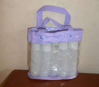 Trousse transparente et mauve + vaporisateurs ou sprays, 200 ml, entièrement en plastique, aucune pièce métallique ne peut venir altérer le liquide que vous mettrez à l'intérie