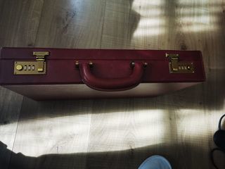 Mallette /porte documents Givenchy en cuir bordeaux avec le sigle de la marque imprimé pleine peau .L(intérieur a compartiments beige et brun est en parfait état avec le poincon de