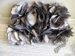 <em><strong>RAVISSANT PETIT SAC A MAINS, NEUF (SOLANO) IDEAL pour une cérémonie TISSU , FLEURS sur le devant 21 x 13cm environ Couleur marron grisé 2 petits s