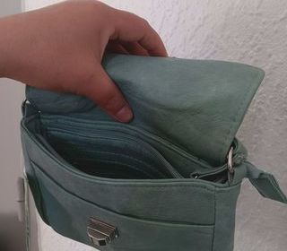 Très bonne qualité. Couleur verte. Sac de ville avec bandoulière non détachable. Plusieurs compartiment avec fermeture éclair