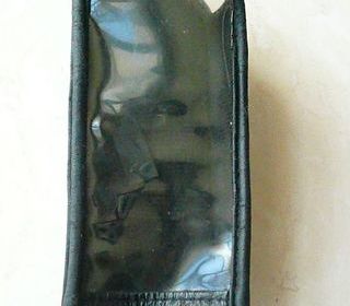 Housse / étui téléphone portable en cuir noir. Avec clip à l'arrière pour l'accrocher à la ceinture ou une poche. Dimensions : 5 x 13 x 2cm (côtés extensibles). Très bon état.