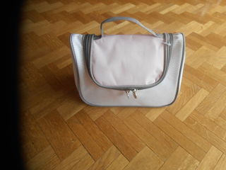 Vanity de couleur très mode... Rose et taupe. Grande ouverture sur le dessus, ouvrant sur un grand compartiment très logeable. Fermeture par fermeture éclair. Lavable en machine