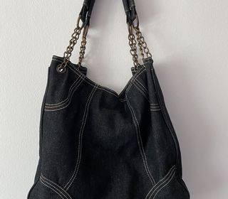 SAC A MAIN EN JEAN NEUF 1 poche avec Fermeture extérieur 2 poches intérieures (1 avec fermeture) 1 poche intérieure pour paire de lunettes ou portable Dimensions 40 cms d